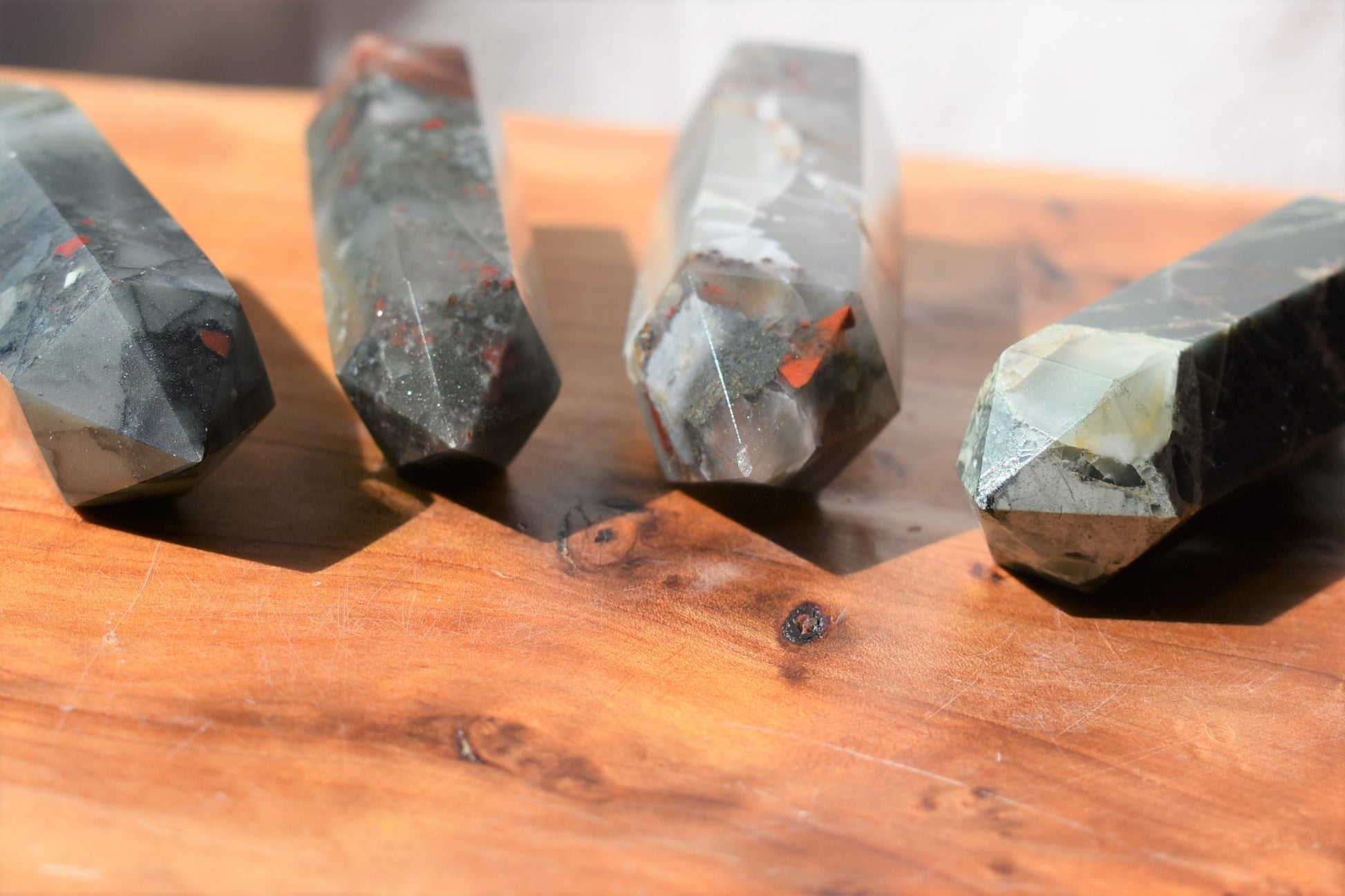 Bloodstone is a powerful healer with the ability to banish evil and negativity. It also has the ability to heighten our intuition and our creative sides. Bloodstone is an excellent stone for grounding as well as giving us courage to do the things we think we cannot. It calms our minds during times of stress as well as helping us make the right choices when are heads are in the clouds. Bloodstone also has the ability to help open our heart chakra, reduce any irritability, aggression or impatience we may be having. It can also help us sleep, by placing it in a bowl of water and placing it next to your bed.